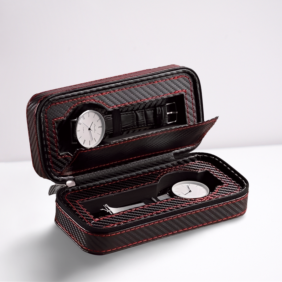• Intérieur Cuir "Rouge Vif" : À l'ouverture, l'éclat du cuir rouge crée un contraste saisissant avec vos montres. Ce revêtement intérieur de haute qualité est spécialement conçu pour stabiliser vos pièces et prévenir toute rayure, agissant comme un véritable bouclier thermique et physique.