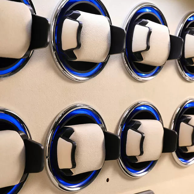 • Pilotage Tactile Intuitif : Prenez le contrôle via l'écran LCD ou la télécommande. Programmez chaque rotor individuellement en définissant le sens de rotation et le nombre précis de tours par jour (TPD) pour répondre aux exigences des plus grandes manufactures.
